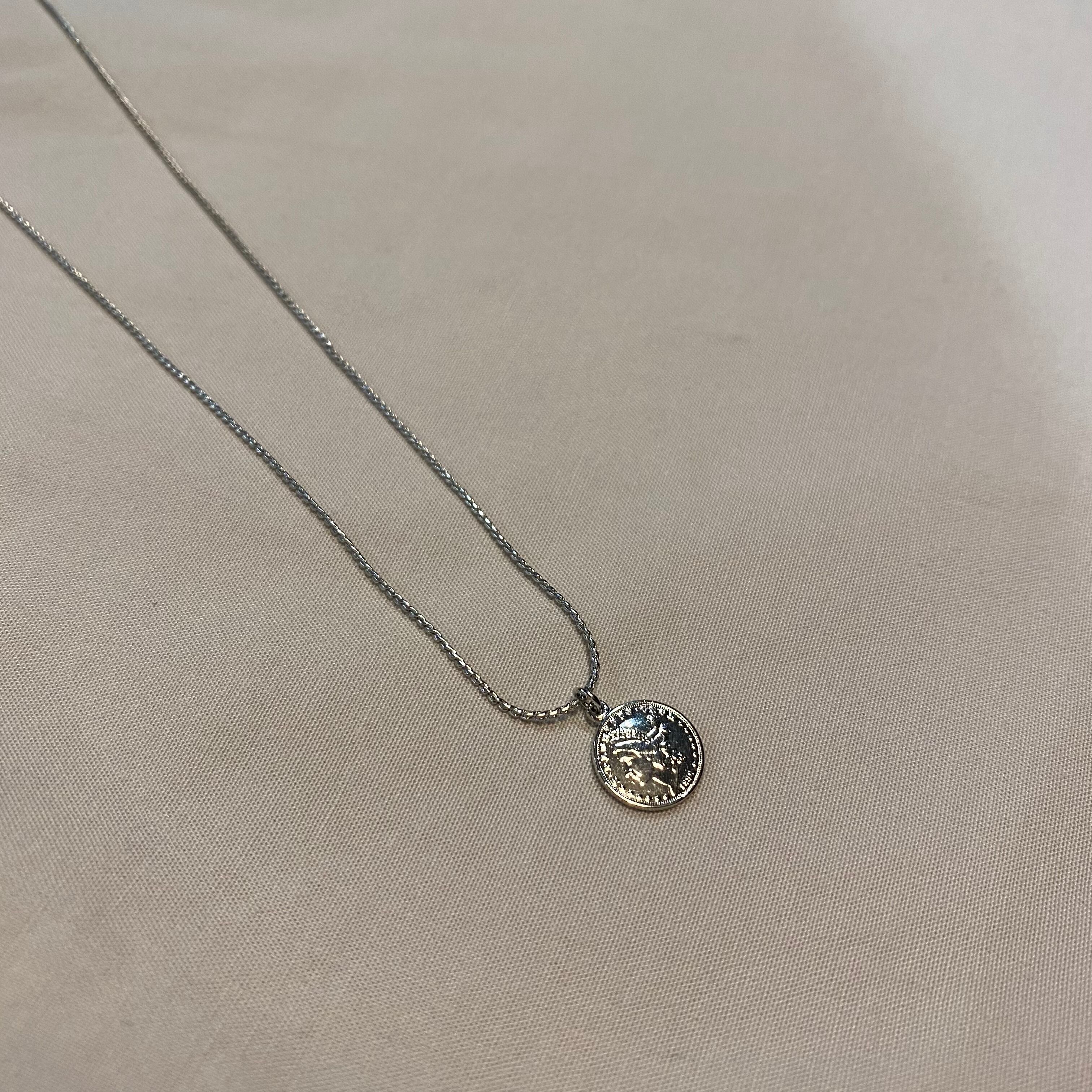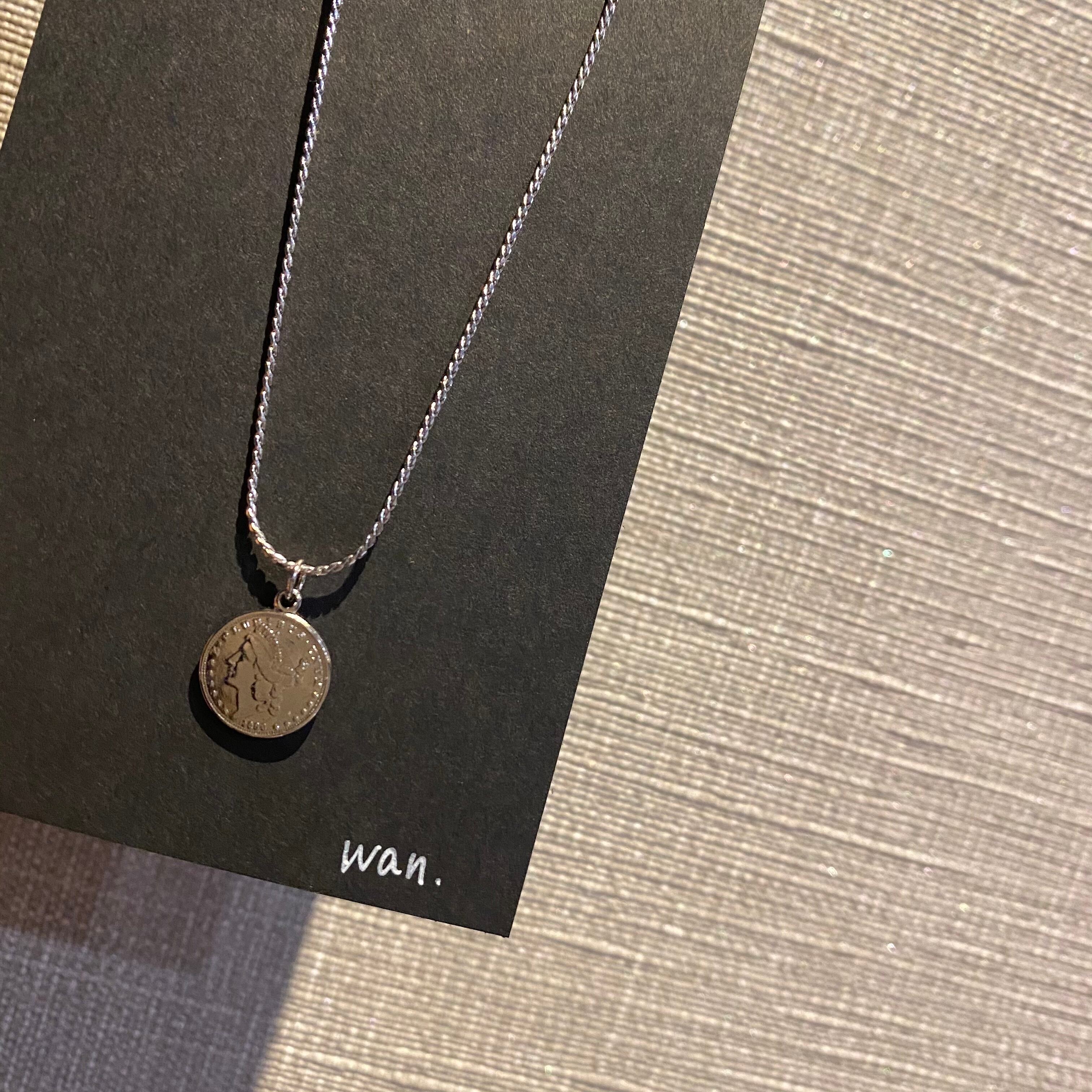 大きすぎないコインチャームがシンプルな服のワンポイントに!